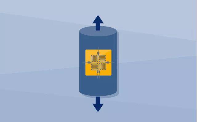 四个应变计固定在下面的称重传感器上,当施加力时发生最大的变形。 箭头方向即为力的应用方向。