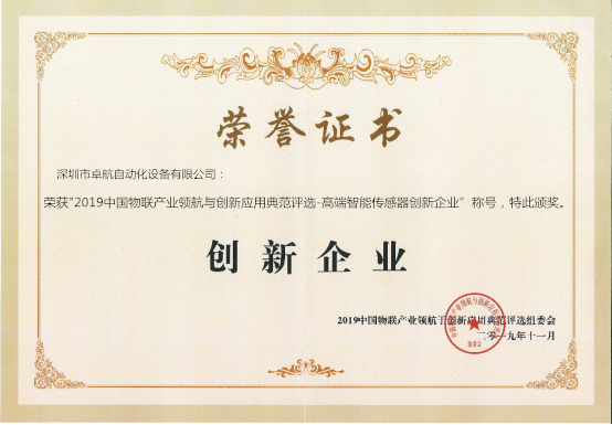 优秀的创新产品往往离不开背后同样优秀的企业,在产品获得殊荣的同时,企业自然也不例外。本届高交会期间,卓航精密斩获“2019中国五连产业领航与创新应用典范评选——高端智能传感器创新企业”称号。